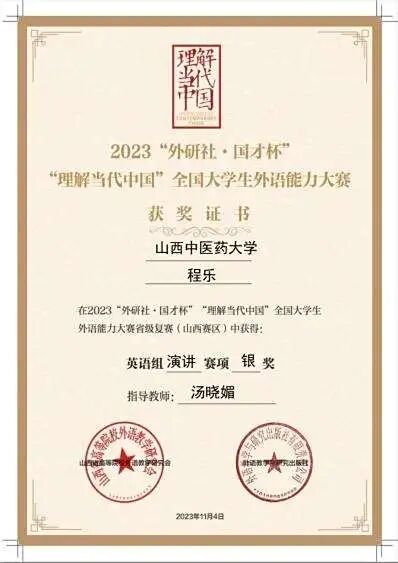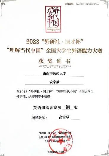 目前,已有三届员工转段到研究生阶段,转段率100%;2018级员工已于2024年首次参加医团队格考试,考试通过率91.53%。学院员工2023年获第八届全国员工“学宪法,讲宪法”活动“新华书店杯”山西赛区总决赛素养竞赛优秀奖、“外研社·国才杯”“理解当代中国”全国老员工外语能力大赛山西赛区(英语组)山西赛区决赛阅读赛金奖、演讲赛银奖;“外研社·国才杯”“理解当代中国”全国老员工外语能力大赛国赛阅读赛铜奖;2024年获首届晋中大学城高校员工创业活动获现代农业类组别创新奖(二等奖)、第九届全国员工“学宪法 讲宪法”活动“新华书店杯”山西赛区总决赛演讲比赛三等奖和素养竞赛三等奖、山西省科技活动周•山西(晋中)第一届老员工科技节创新设计比赛医养健康领域优秀奖、华北五省(市、自治区)老员工人文知识竞赛山西赛区决赛团队赛三等奖、“外研社·国才杯”“理解当代中国”全国老员工外语能力大赛英语组山西赛区决赛演讲赛铜奖;2025年获第十届全国悦读中医活动阅读推广人称号、“建行杯”中国国际老员工创新大赛山西赛区决赛金奖2项、“络学”杯中医药知识竞赛全国赛二等奖。