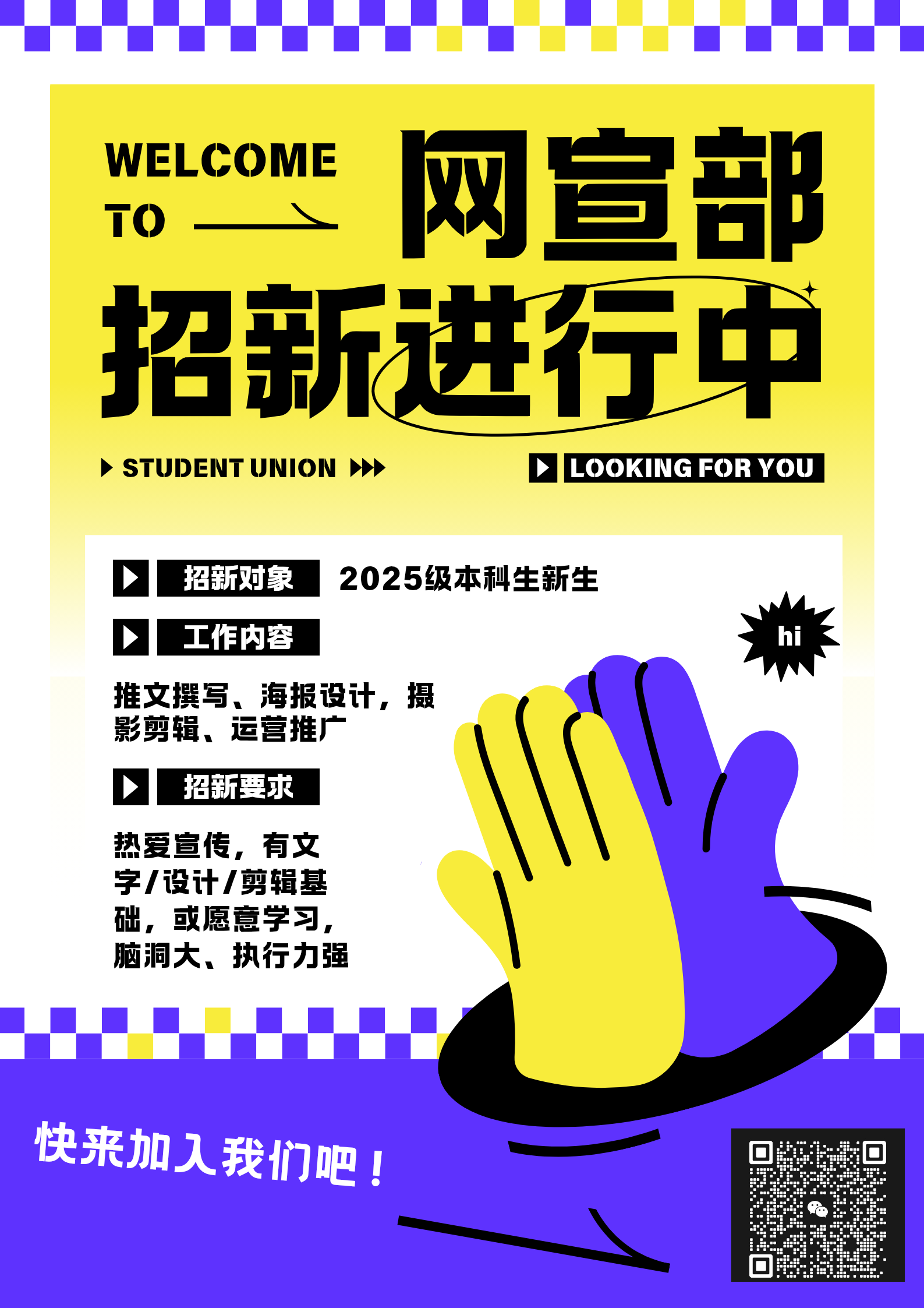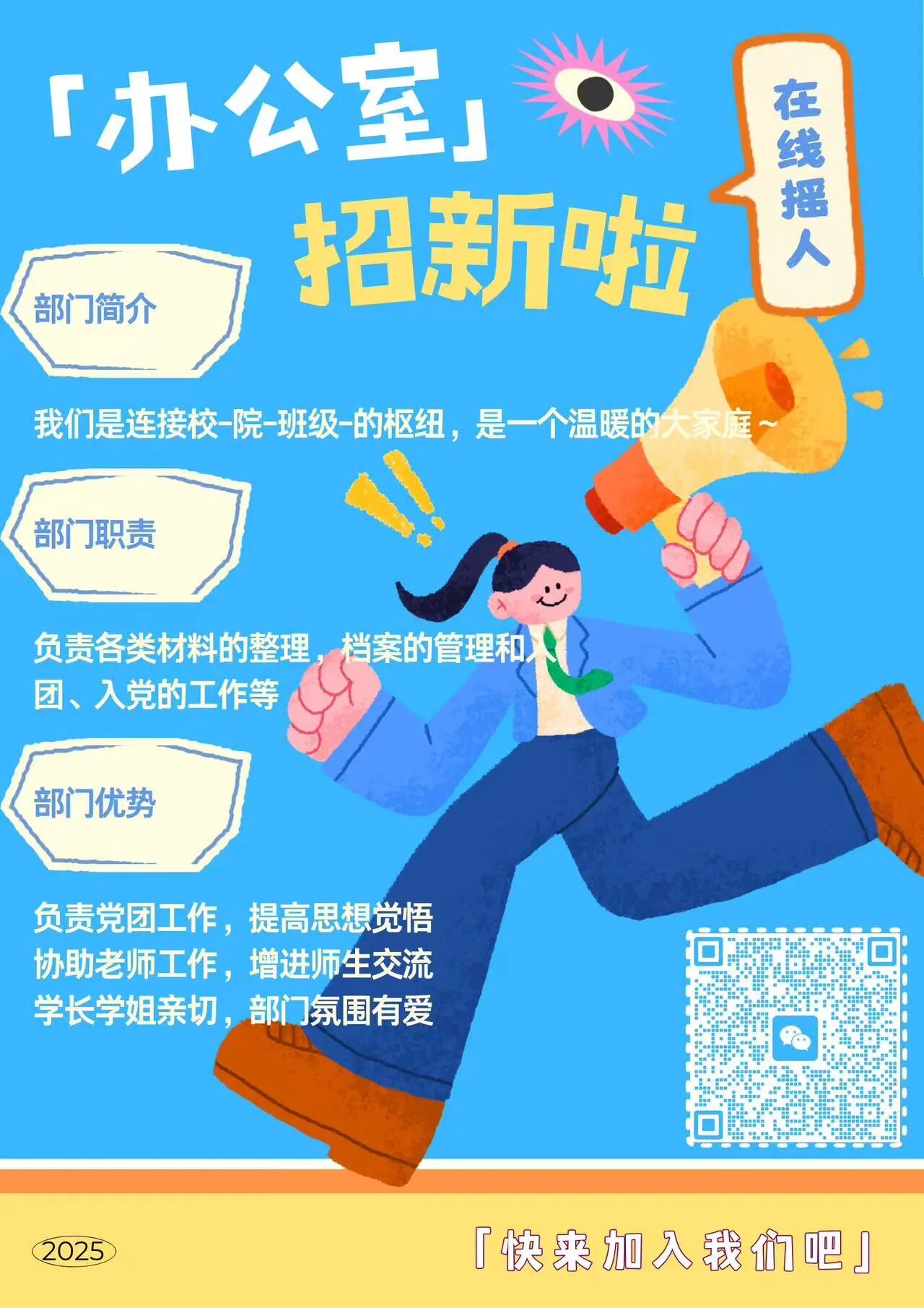 304永利集团网宣部招新啦!速来集合~宝子们看这里!✨我们负责学院宣传与官方平台运营,超有意思哦!加入能学推文、海报、短视频技能,还能跑活动、攒经验、拿综测加分,认识超多志同道合的小伙伴~零基础也完全OK!热烈欢迎每一位有创意的你加入,一起玩转校园宣传!