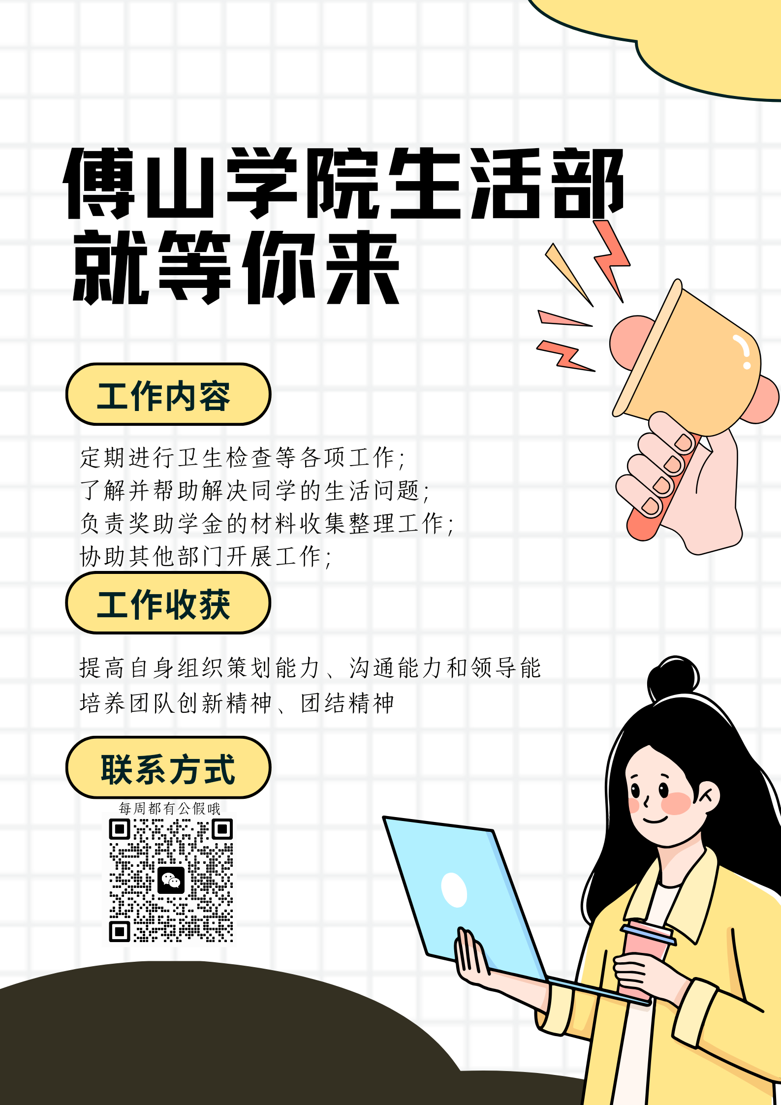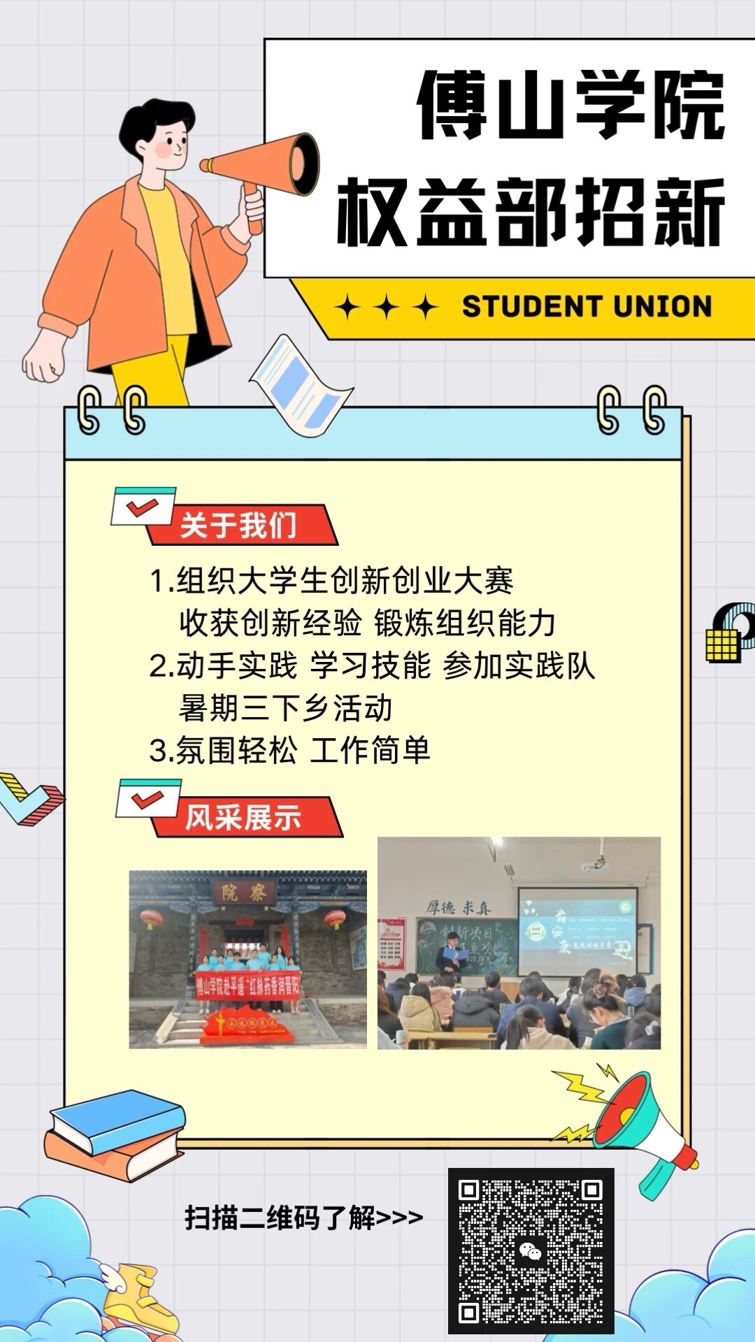 每一份热爱都值得被看见,每一位同学都能找到发光的土壤。304永利集团员工会招新通道已为你敞开,别让犹豫错过成长的机会。快来pick心仪的部门,与我们一起,用行动书写属于傅院学子的青春答卷,共同打造更精彩的校园生活!