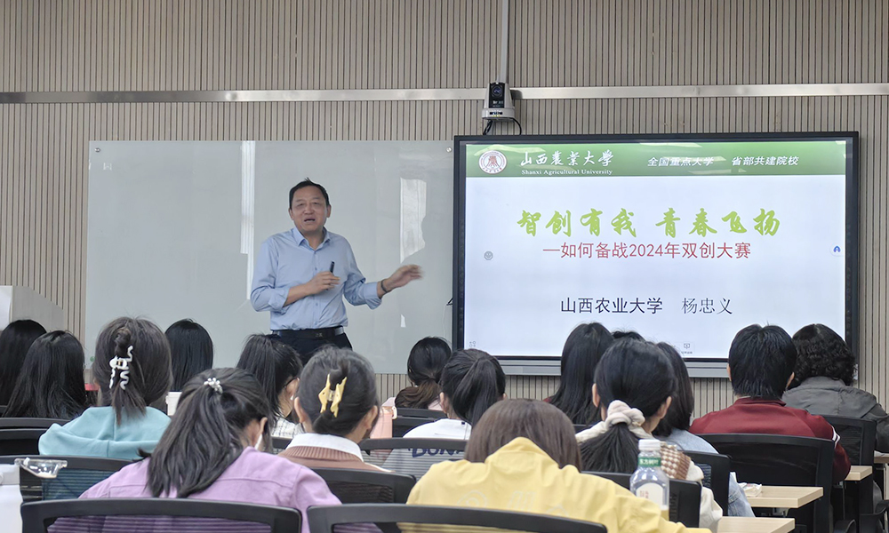 杨忠义从时代“热词”切入,引导同学们在准备创新项目时应研判行业与技术发展方向,把握项目所属领域的重点与趋势,积极挖掘中医药文化特色,将中医思想与创新创业热点相结合,以学科及学科群为单元形成创新创业课题,增强创新项目的竞争力。他还对往届比赛概况、不同赛道的相关要求进行了介绍,为同学们分享了备赛经验,着重强调了团队合作对创新创业的积极作用,为同学们备战双创大赛提供了强有力的支持。