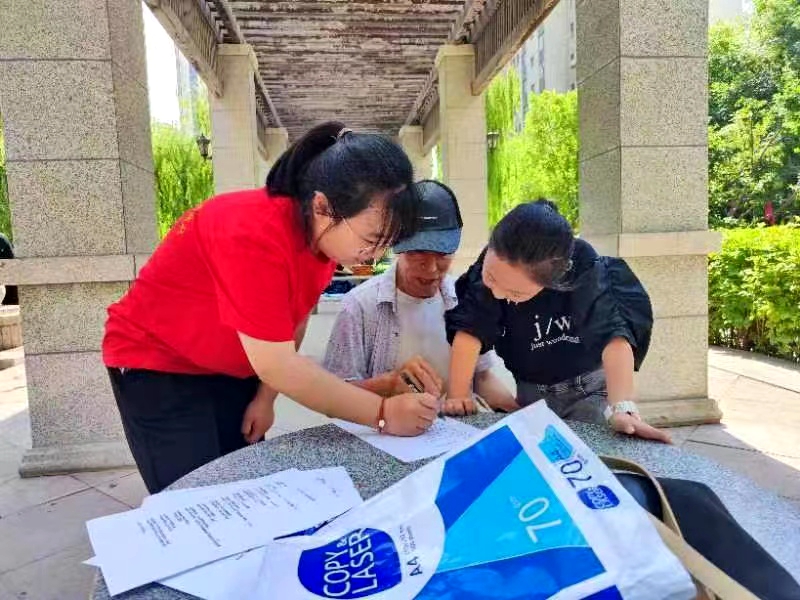 2022年6月20日,在吕文雁老师的带领下,公司暑期“三下乡”社会实践队又一次来到首创国际园小区,开展义诊、中医知识普及宣传以及问卷调查等活动。