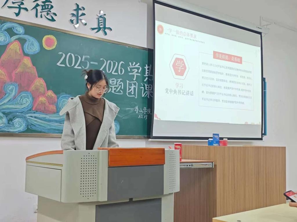 杨贝尔以学习习近平总书记重要讲话,做合格共青团员为主题,强调团员应在思想上高度重视、行动上积极践行,服务集体,展现共青团员的先进性,为实现中华民族伟大复兴贡献青春力量。